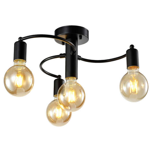 Сары шыныдан жасалған жартылай беткі төбе шамы, қара E27