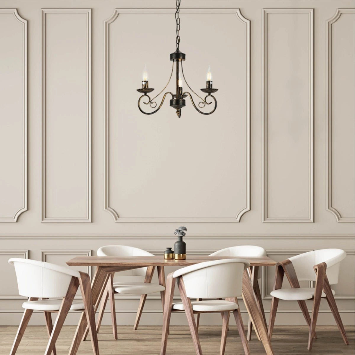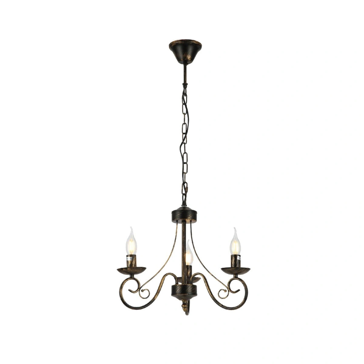Е14 шамдары бар көне алтынмен қапталған қара люстра
