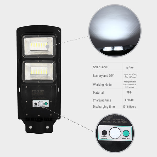 Современный и полностью автономный светодиодный светильник, работающий от солнечной энергии, предназначенный для надёжного и энергоэффективного освещения без подключения к электросети.