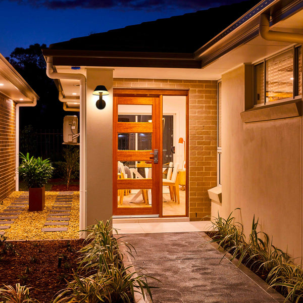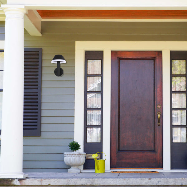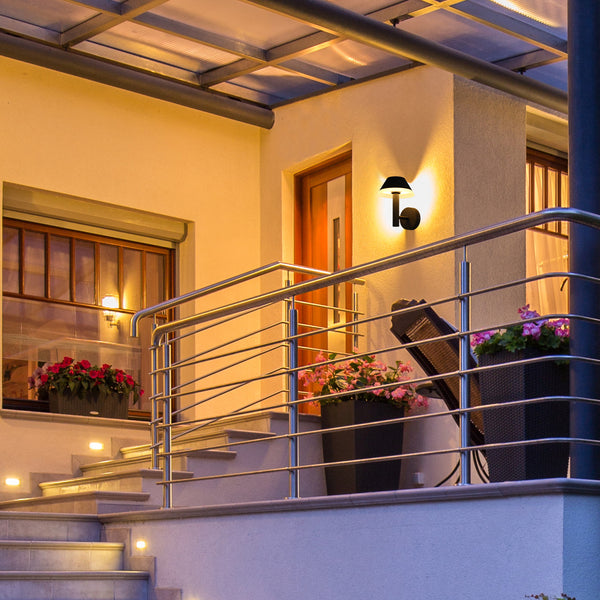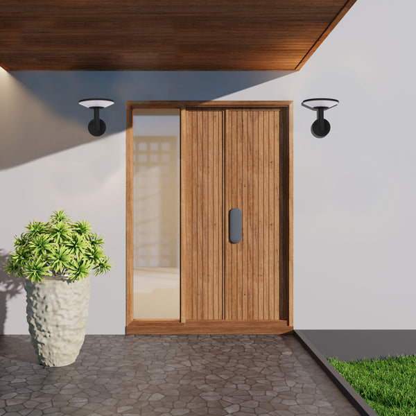 Два настенных светодиодных светильника (бра), предназначенных для декоративной и функциональной подсветки фасадов, террас и садовых зон, создавая теплую и привлекательную атмосферу.