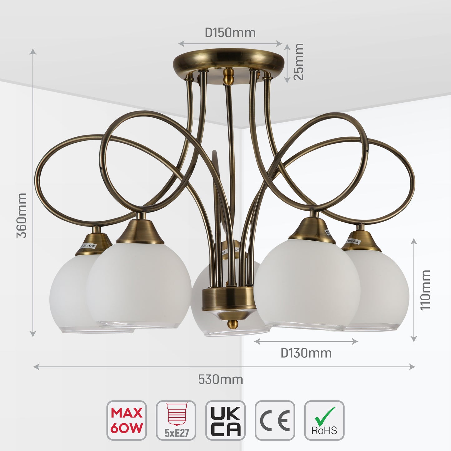 Светильник совместим с лампами различной цветовой температуры — от теплого до холодного белого, а также с диммируемыми лампами (при наличии диммера). Использование светодиодных ламп E27 поможет достичь энергоэффективности и долговечности.