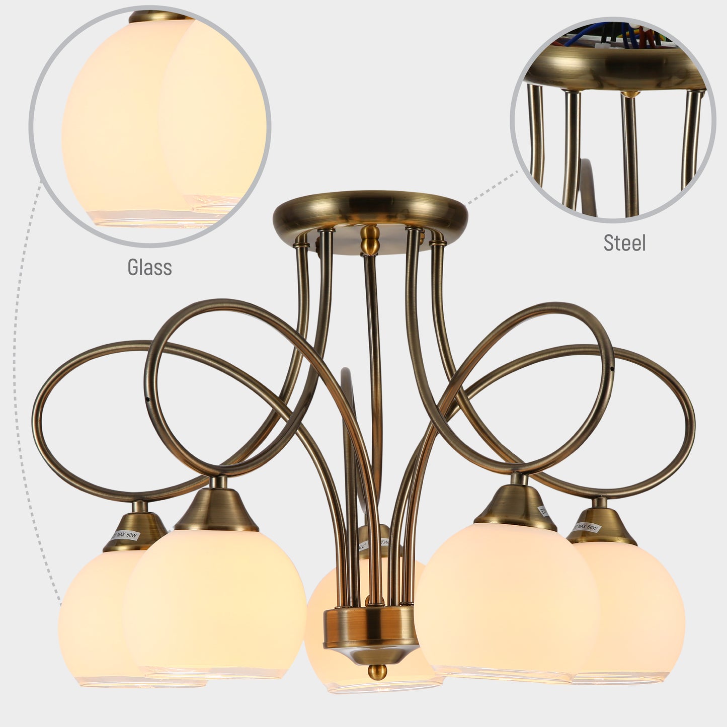 Лампочки в комплект не входят. Не забудьте приобрести подходящие лампы E27 при заказе.