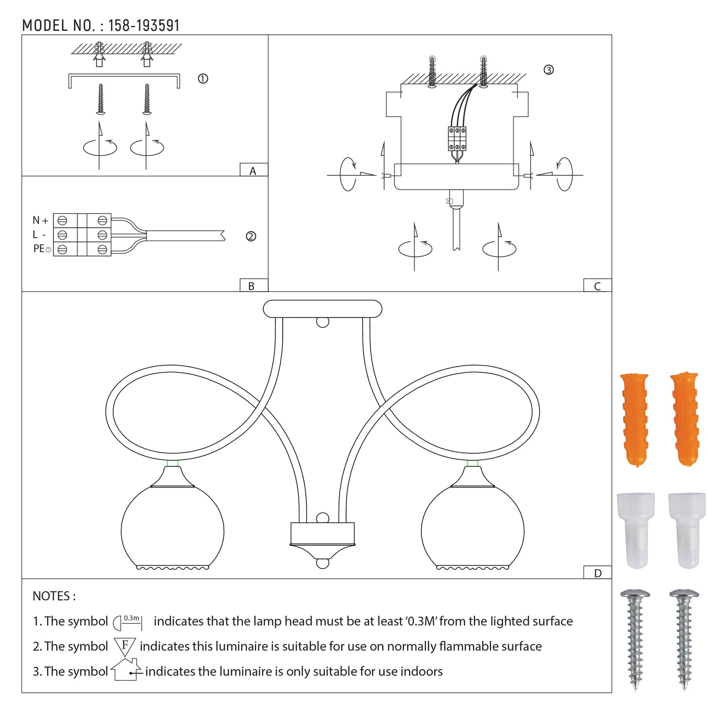 Содержимое коробки | 1 шт Осветительный прибор, Руководство пользователя, Набор аксессуаров (2 шт Винт с зажимом, 2 шт Дюбель) |