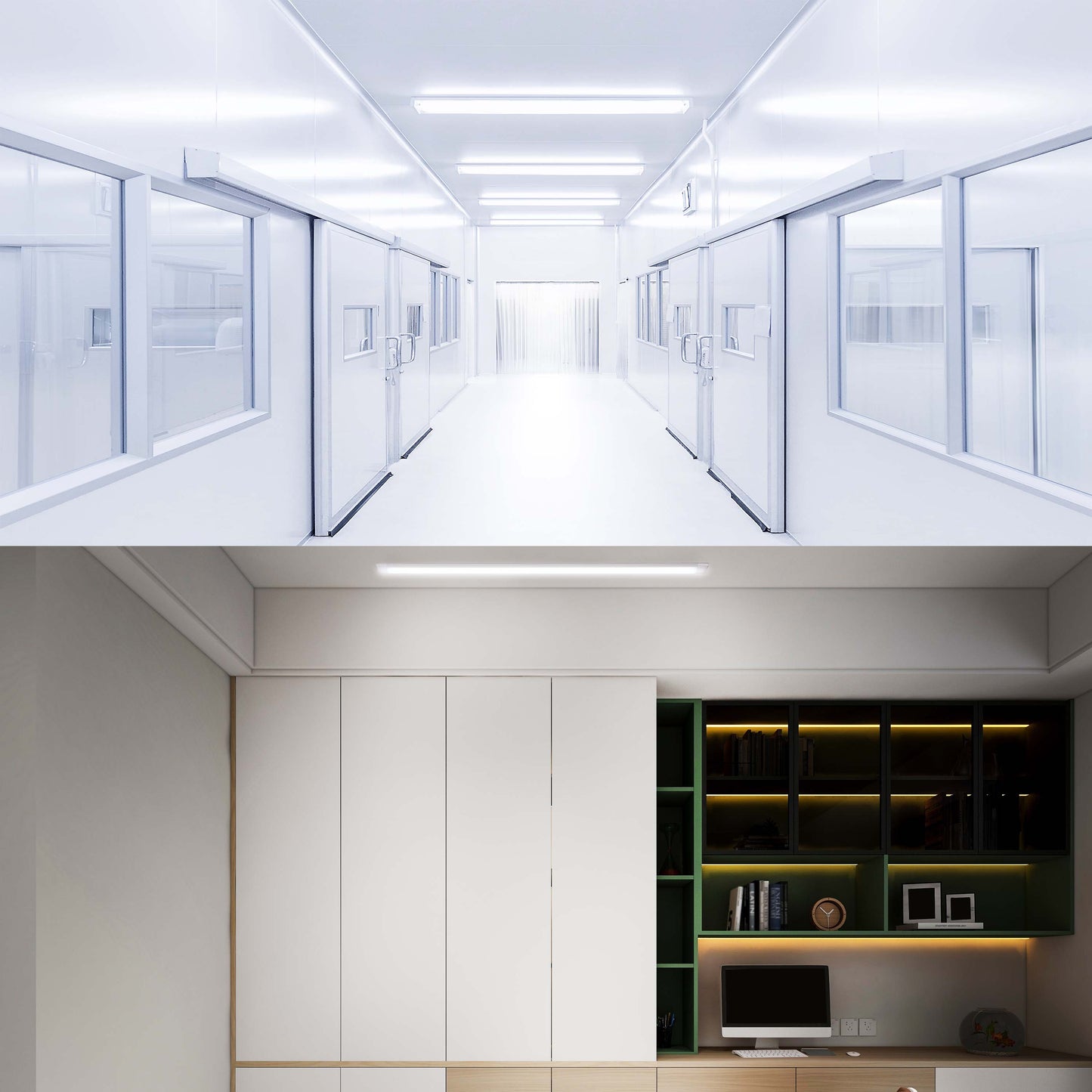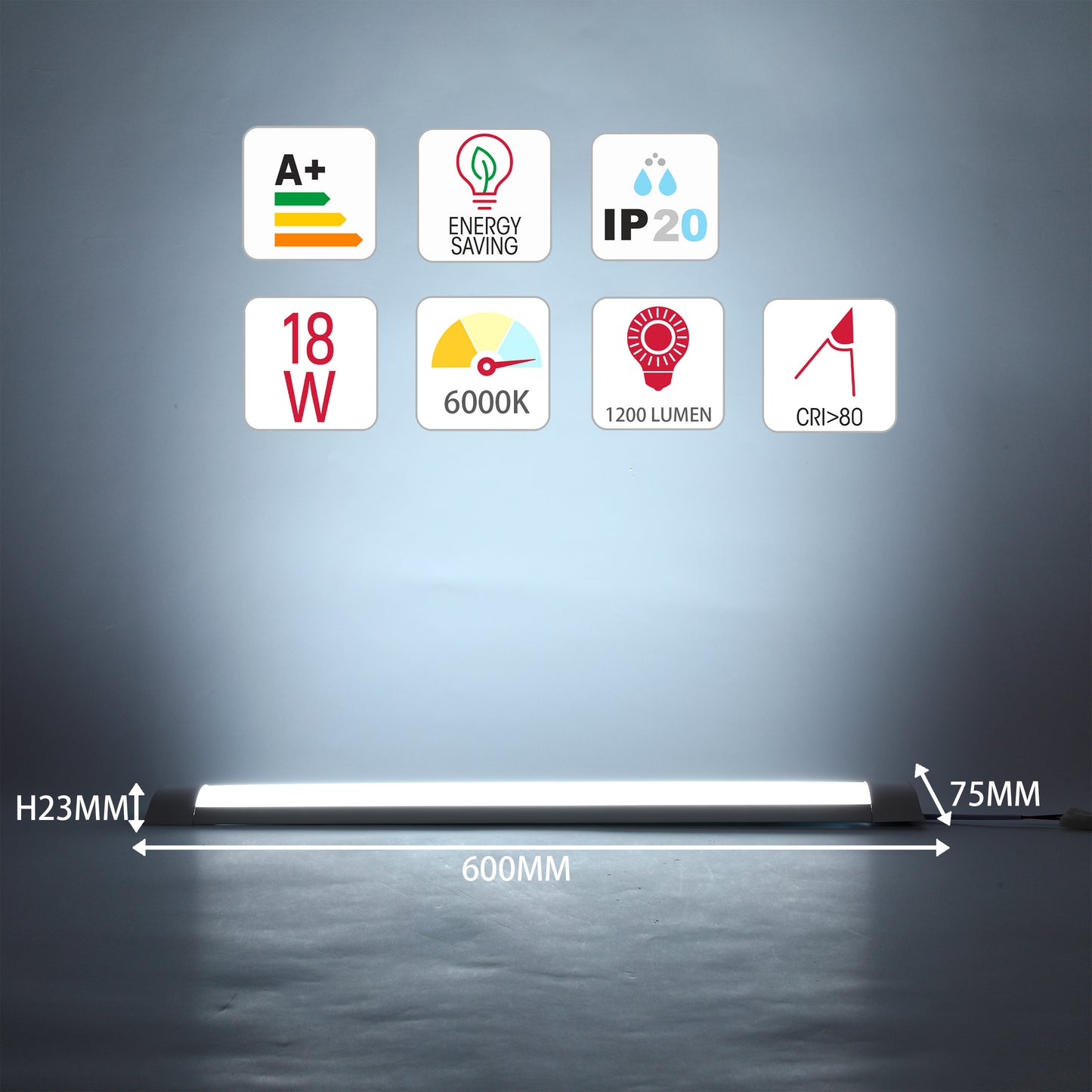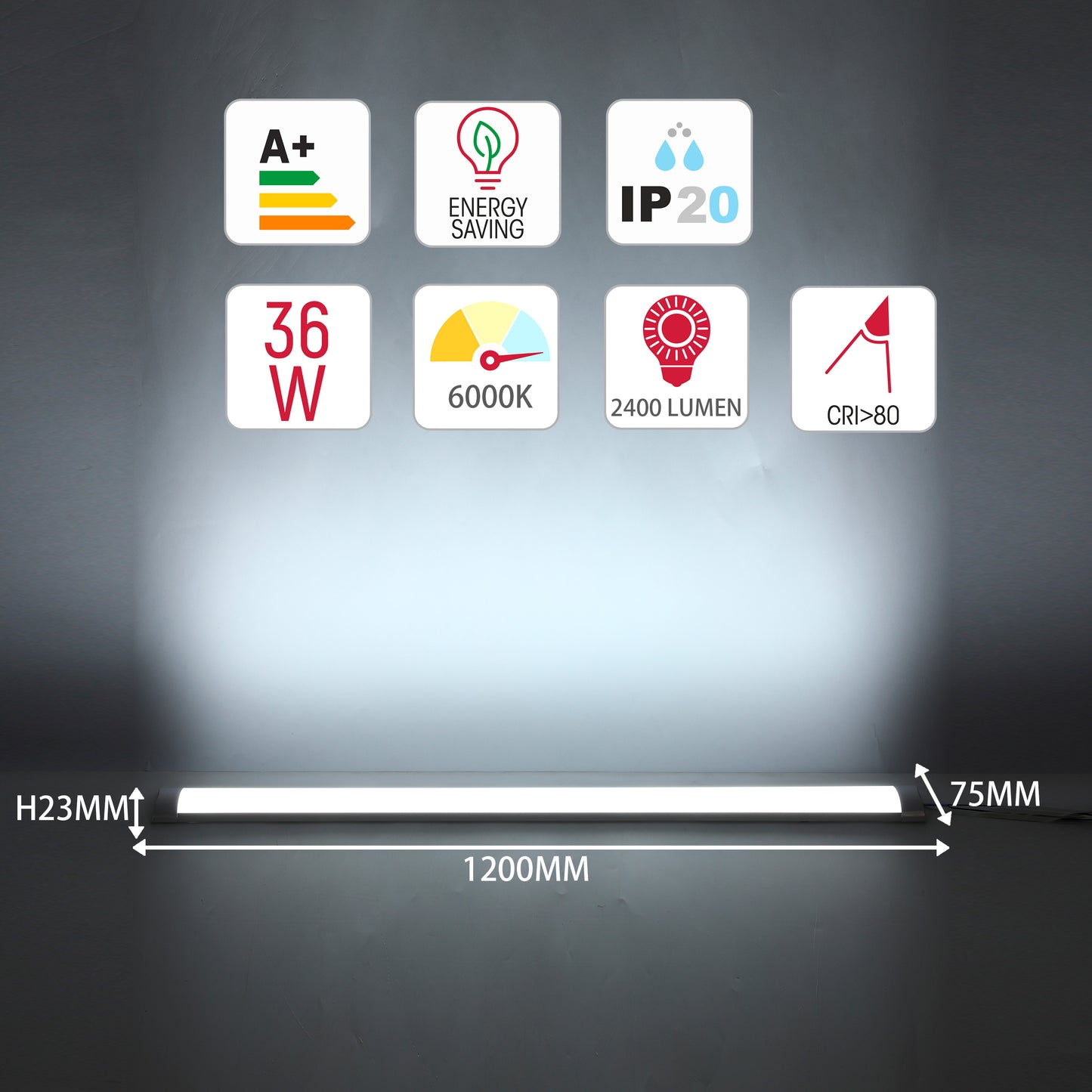 Эти светильники мощностью 18W и 36W создает равномерный и комфортный свет, который был совершенствован для вашего благополучия. Свет без ослепления и мерцания легко воспринимается глазами и идеально освещает окружающее пространство. Этот светильник доступен в холодно дневном свете 6500K. Длина продукта составляет 60см и 120см, он оснащен 15-сантиметровым кабелем питания и опальным диффузором, а его степень защиты IP составляет 40 Этот светильник имеет встроенные светодиоды и может использоваться внутри здания. Вам также не нужно беспокоиться о замене светильника, так как встроенные светодиоды имеют долгий срок службы. С энергетическим классом A++ этот стационарный светильник является разумным и экологически чистым выбором для вас.