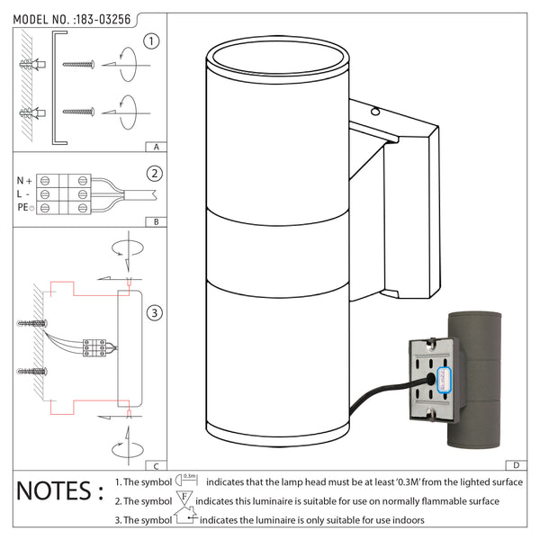 Настенный светильник LED 312G (2×GU10, тёмно-серый, IP54)