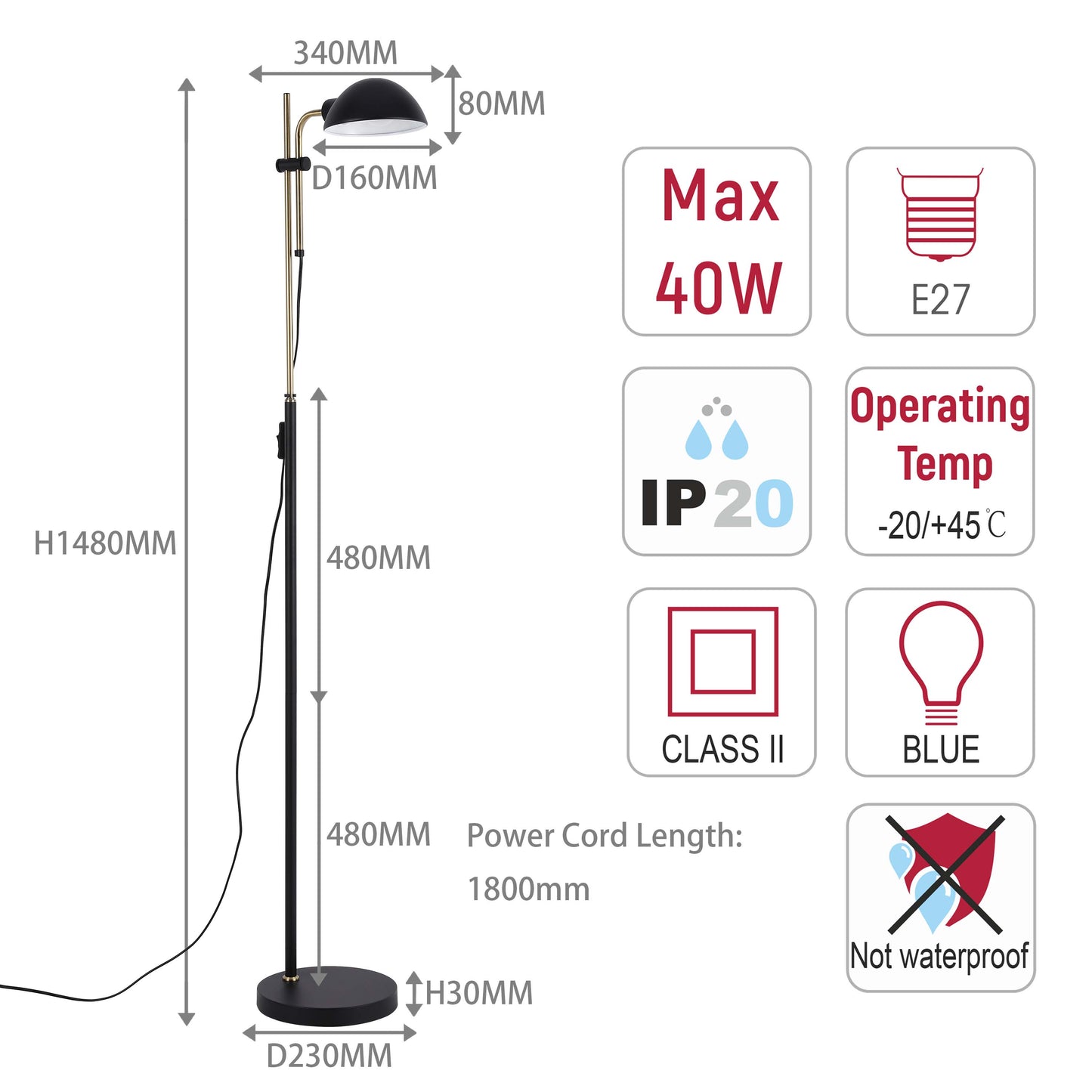 Абажур: Металл, окрашен в матовый чёрный цвет с белой внутренней поверхностью для лучшего отражения света.