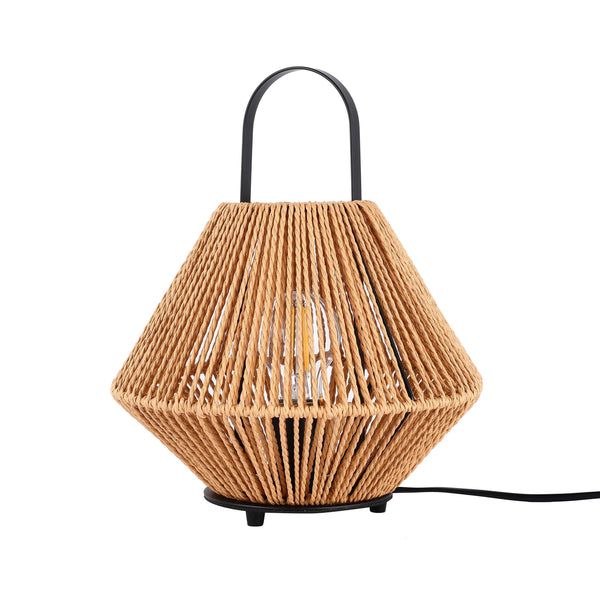 Этот настольный светильник представляет собой гармоничное сочетание природных материалов и современного дизайна. Абажур выполнен из прочного плетёного шнура в тёплом натуральном оттенке, что придаёт светильнику уютный, рустикальный вид. Геометрическая форма корпуса добавляет оригинальности, а открытая структура позволяет мягко рассеивать свет, создавая приятную атмосферу в помещении.