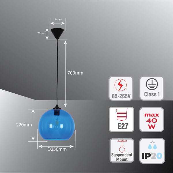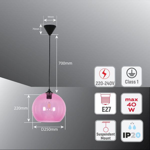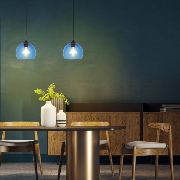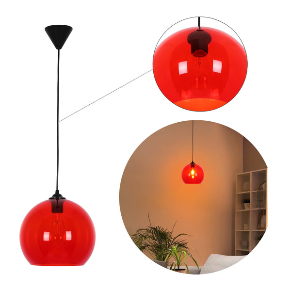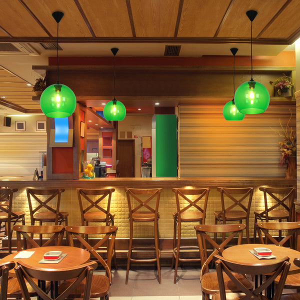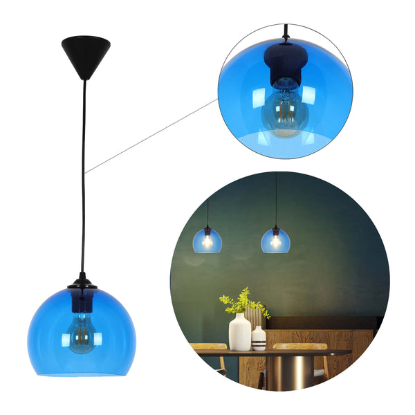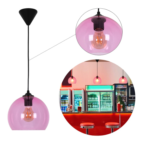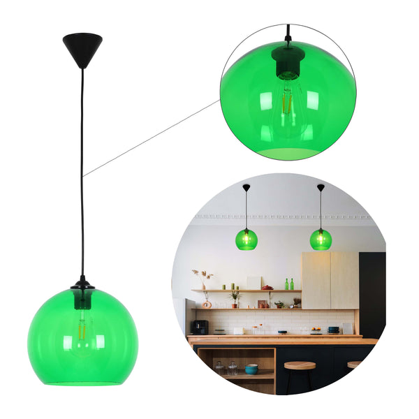 Этот подвесной светильник представляет собой классический подвесной плафон в форме шара или полусферы из цветного глянцевого стекла. Он идеально подходит для акцентного освещения, создания цветовых пятен в интерьере, а также для установки группами или линиями над барными стойками и обеденными столами.