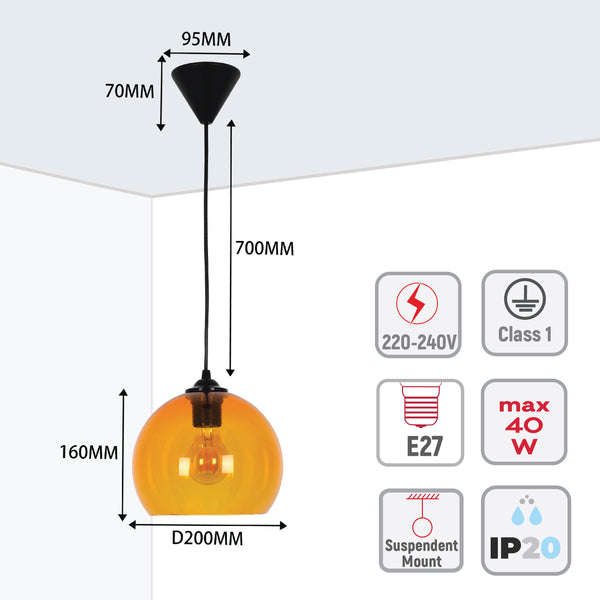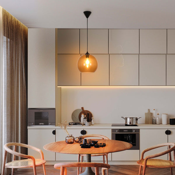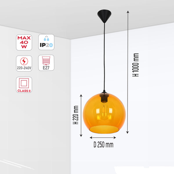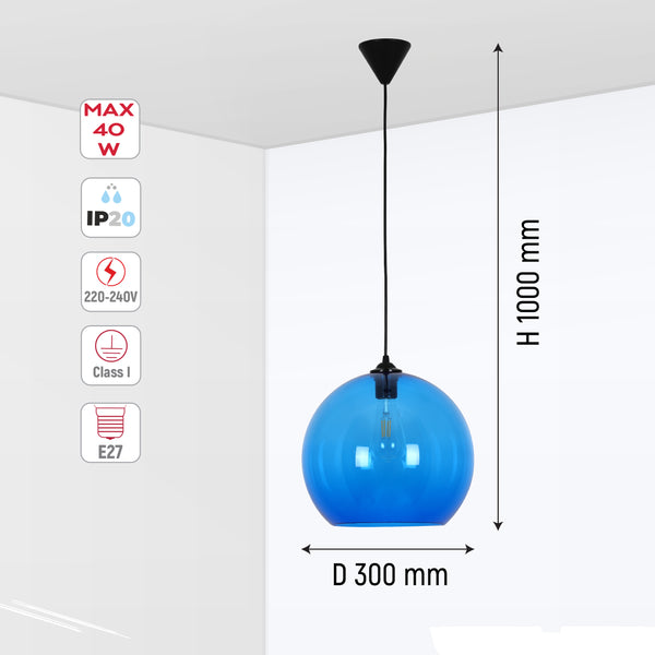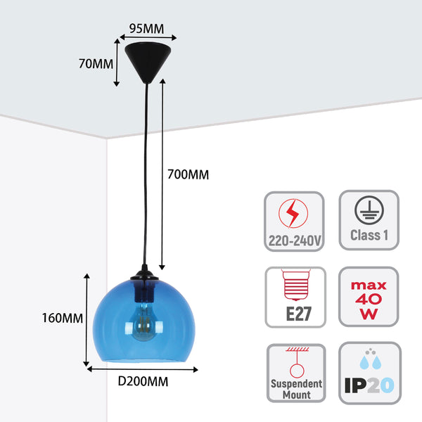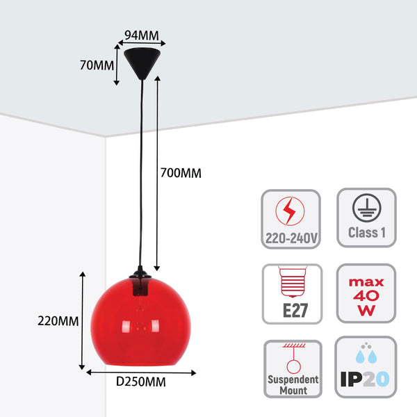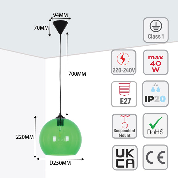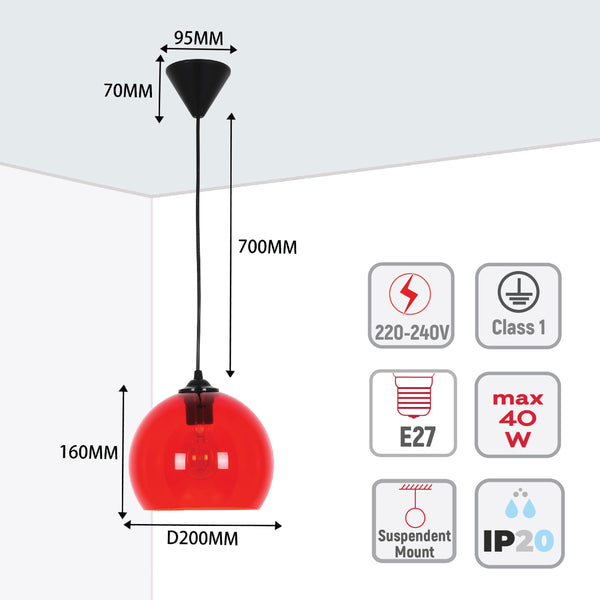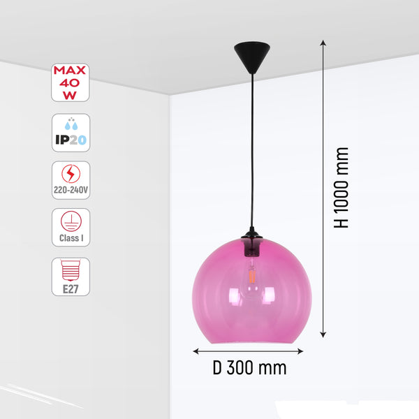 Этот подвесной светильник представляет собой классический подвесной плафон в форме шара или полусферы из цветного глянцевого стекла. Он идеально подходит для акцентного освещения, создания цветовых пятен в интерьере, а также для установки группами или линиями над барными стойками и обеденными столами.