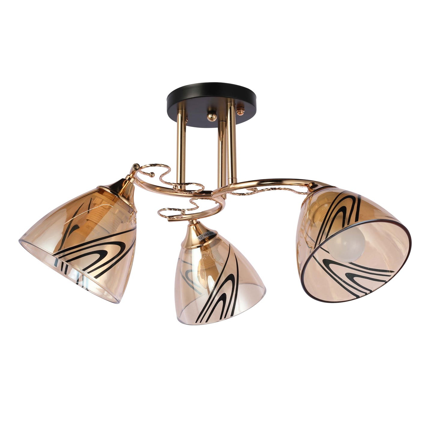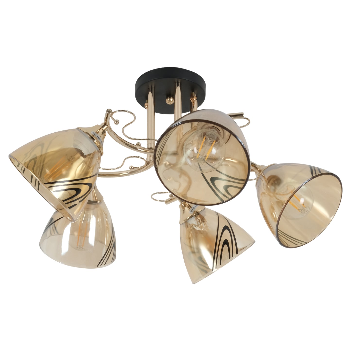 Потолочная люстра 8109 — чёрный металл, золото, янтарное стекло, 3 или 5 ламп E27