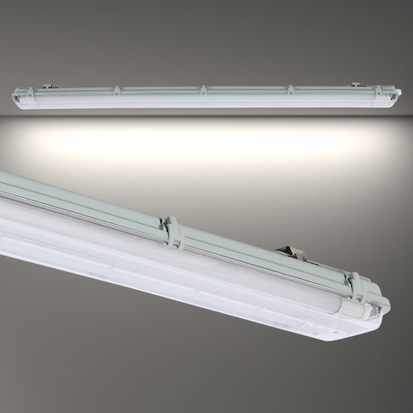 Пылевлагозащищённый светодиодный светильник мощностью 2×18 Вт с нейтральным белым свечением (6000K).