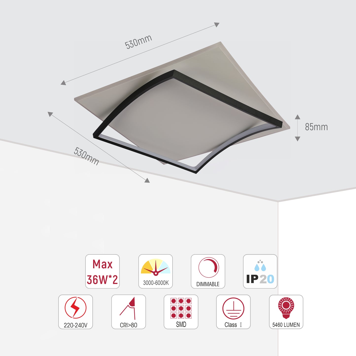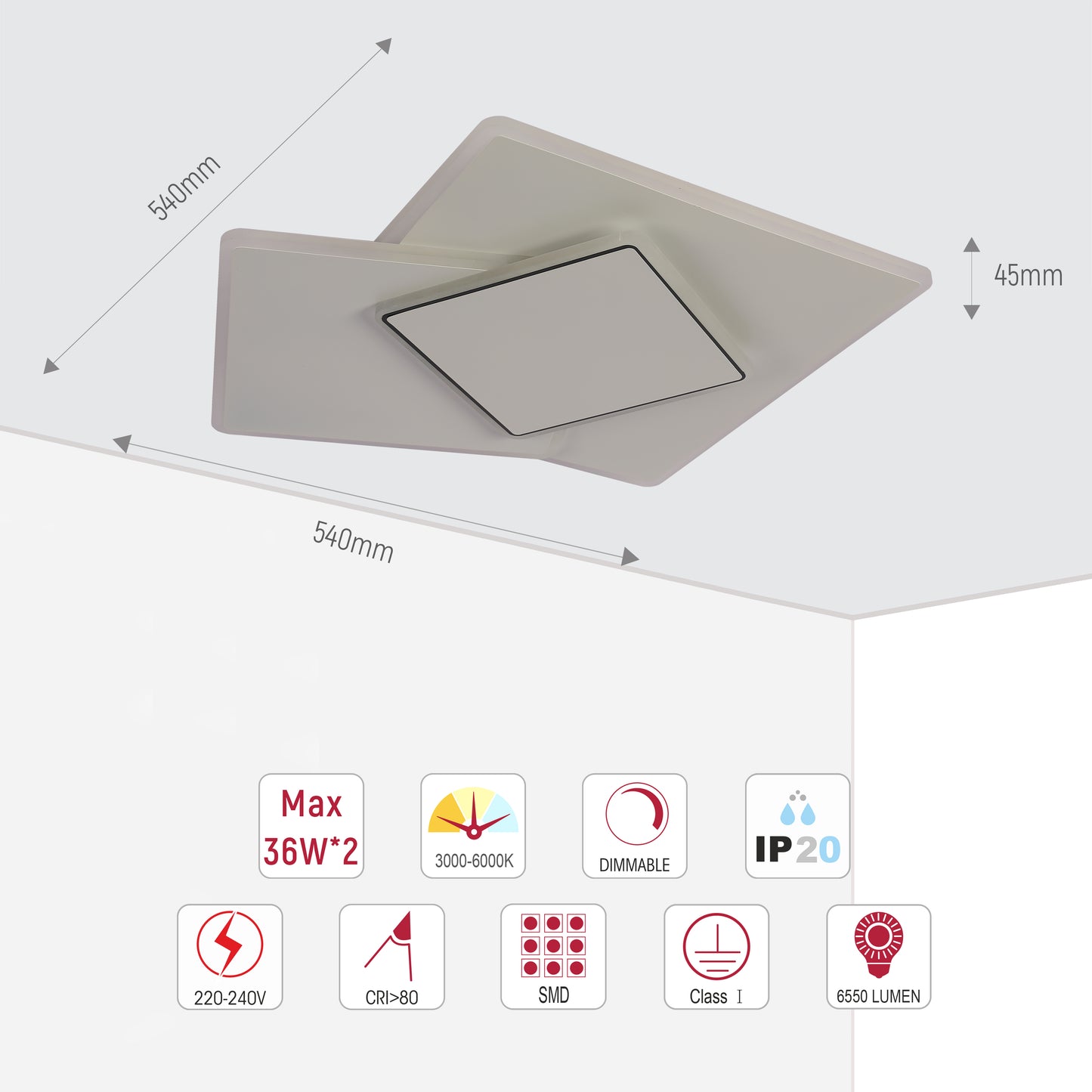 Современный потолочный светильник LED, белый корпус, диммируемый, с изменением цветовой температуры и дистанционным управлением