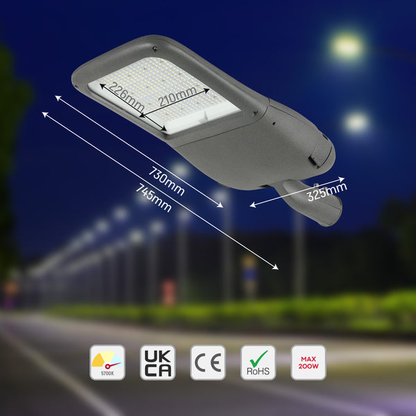 Этот светильник обеспечивает высокий световой поток и значительную экономию энергии. Он доступен в нескольких мощных вариантах: 100 Вт, 150 Вт, и 200 Вт, что позволяет подобрать оптимальное решение для дорог разной категории. Нейтральный белый свет с цветовой температурой 5700K обеспечивает высокую чёткость и комфортную видимость, что идеально подходит для дорожного освещения.