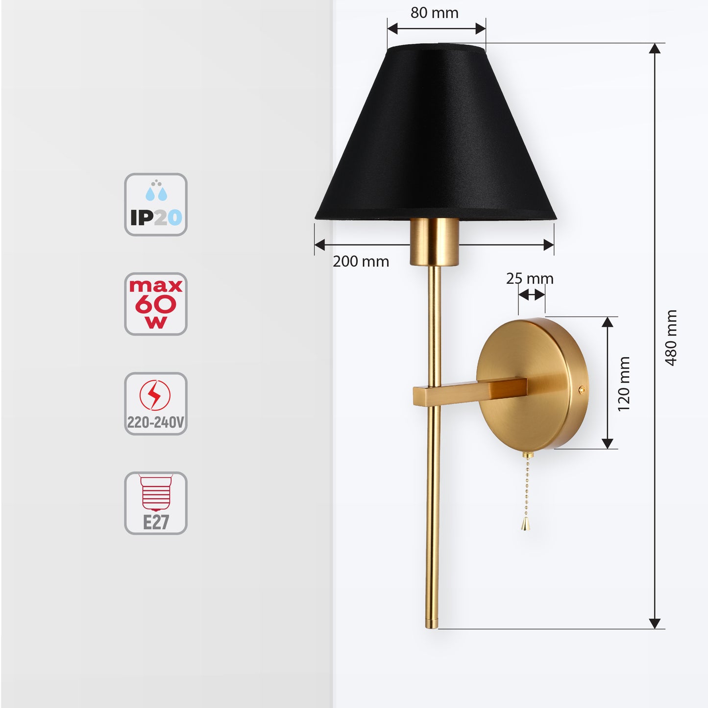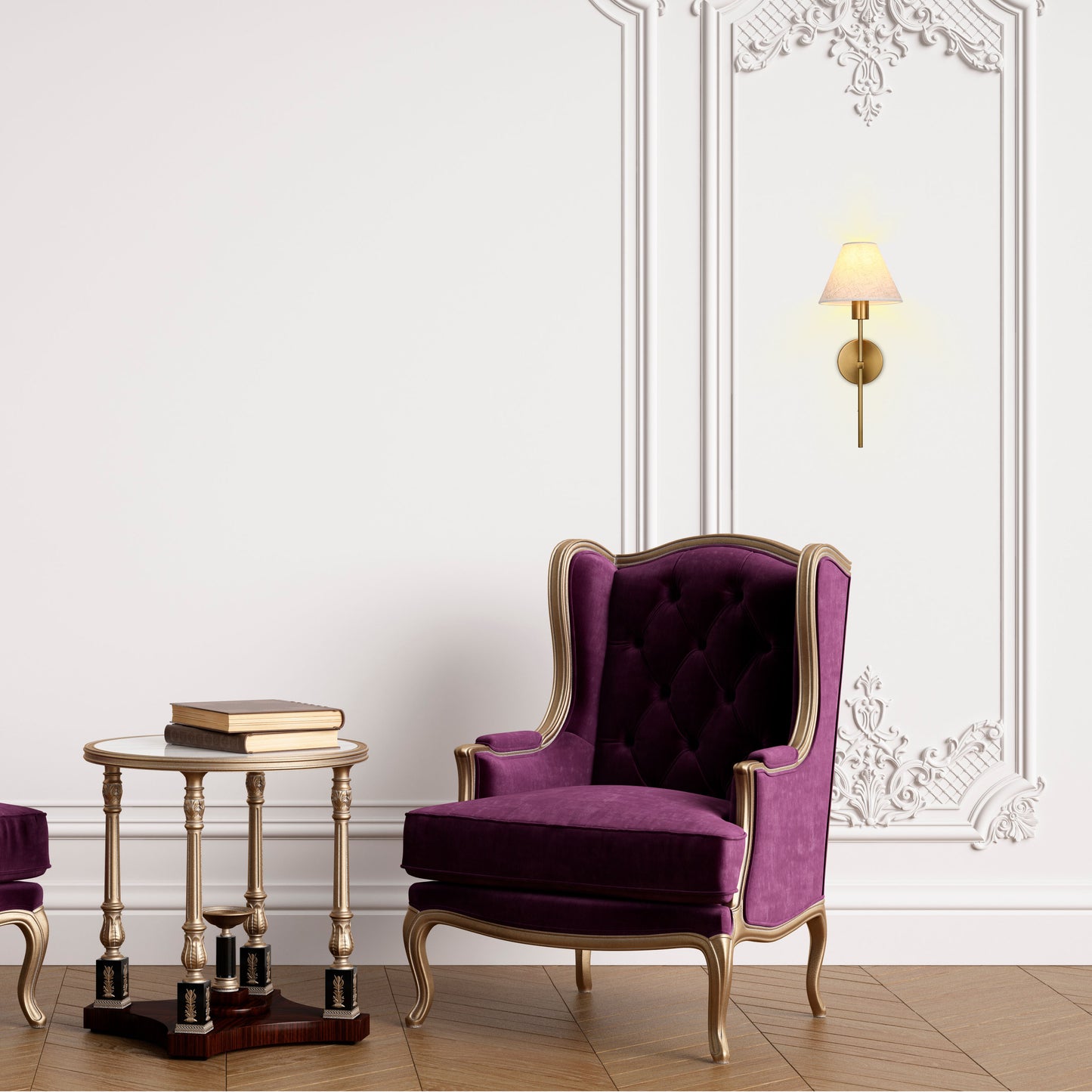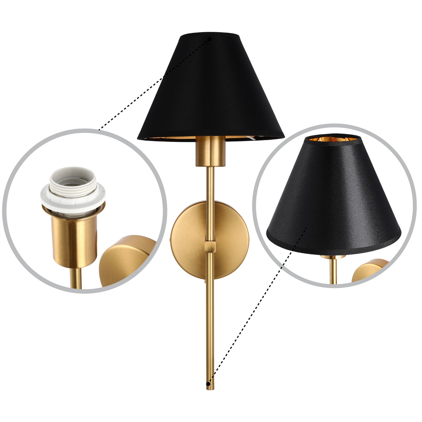 Настенный светильник 6779-A — изысканная модель с бронзовой отделкой и абажуром из ткани (в белом или чёрном варианте). Этот светильник с одним рожком органично впишется как в классический, так и в современный интерьер, добавляя уют и стиль.