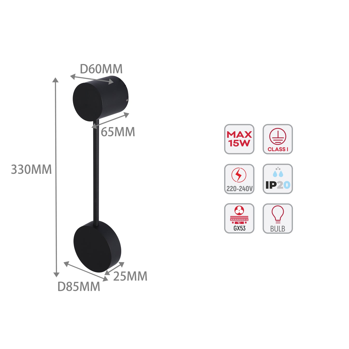 Современный настенный светильник — чёрный, 1/2 лампы GX53