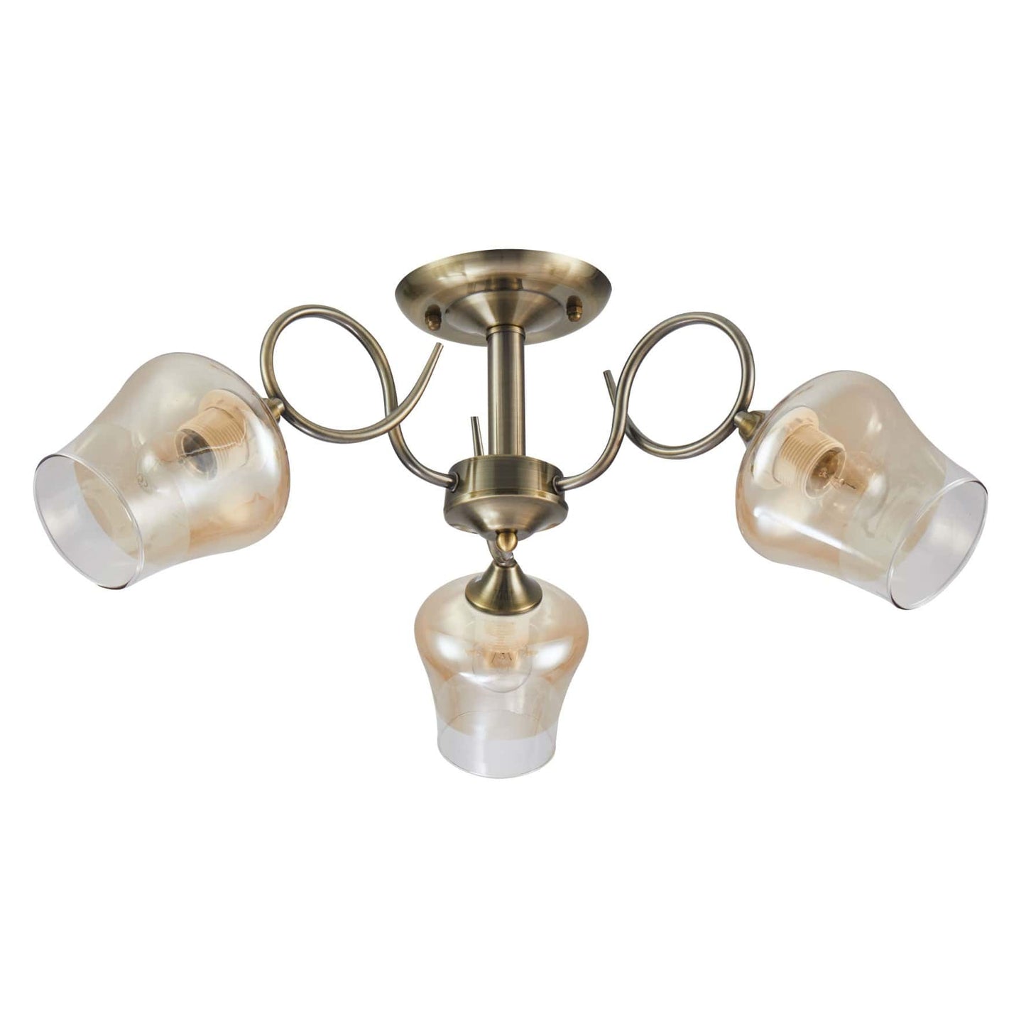 Amber Bell Glass Antique Brass Metal Semi Flush Ceiling Light