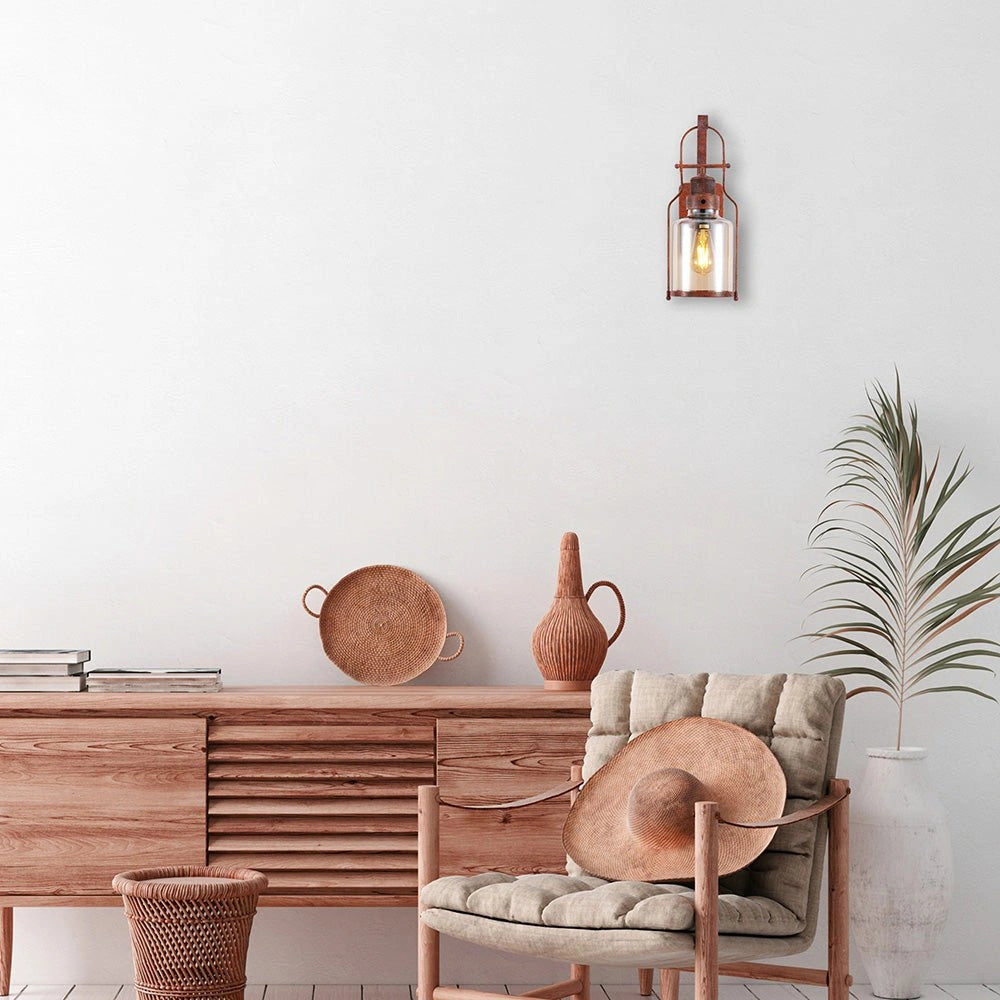 Рустикальное очарование с современным стилем: Настенный светильник из старого коричневого металла с янтарным стеклом в форме цилиндра E27 черпает вдохновение в вечной красоте деревенских фонарей, effortlessly blending into traditional, farmhouse, or even boho-chic styled spaces. Его рустикальная старая коричневая отделка в сочетании с янтарным стеклянным абажуром создает визуально успокаивающее сияние, напоминающее уютные европейские бистро или винтажные загородные домики.