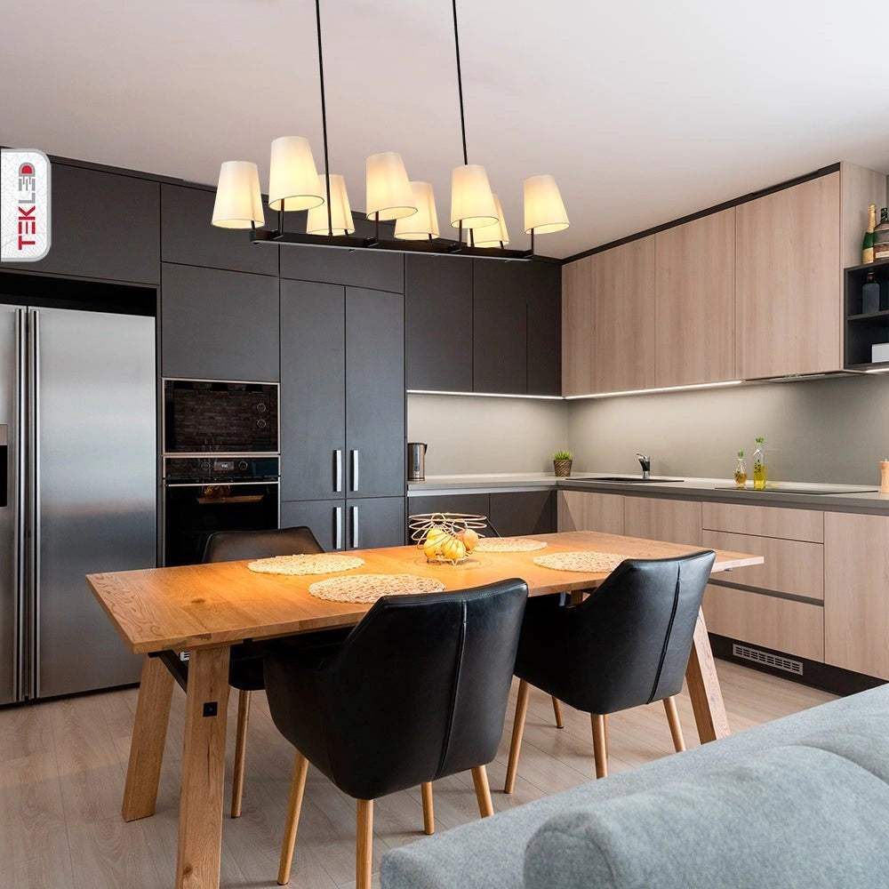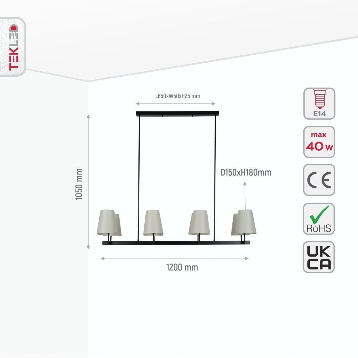 Бежевый тканевый абажур, черное металлическое основание, люстра для кухни, потолочный светильник E14