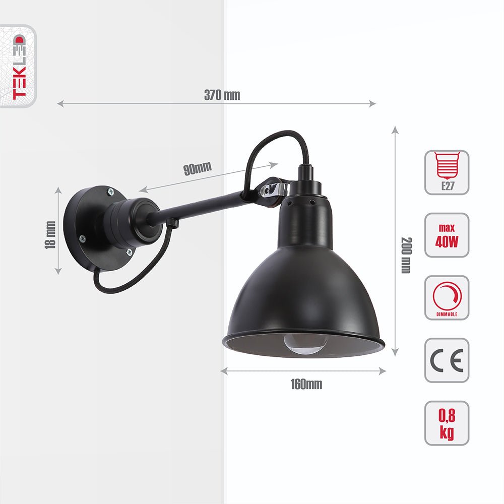 Name | Black Hinged Metal Dome Wall Light with E27 Fitting |