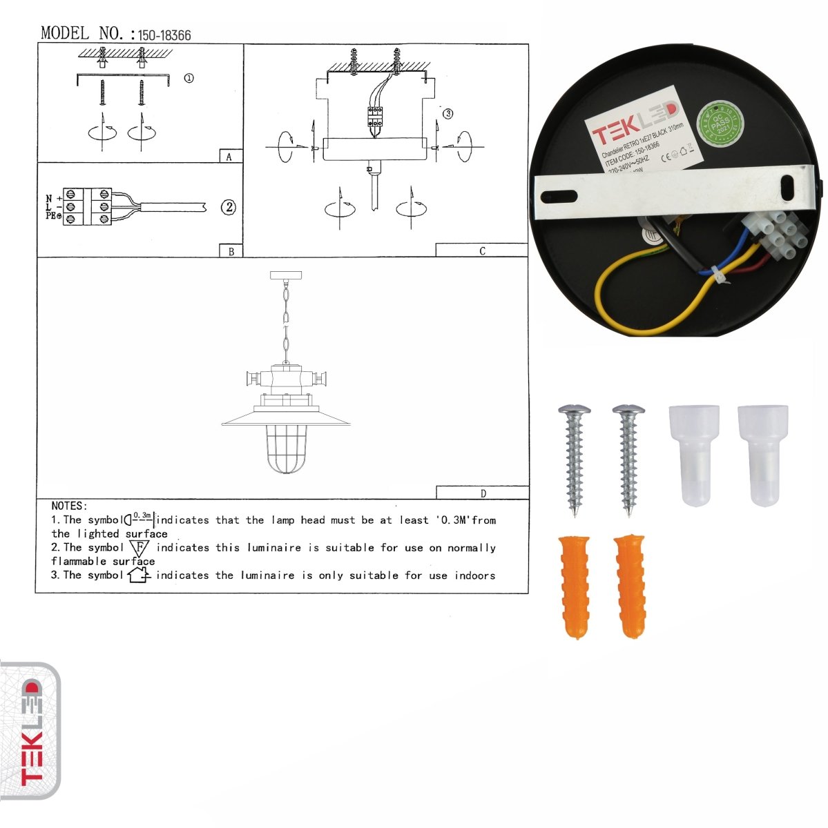 Name | Black Nautical Industrial Caged Flat Shade Glass Metal Ceiling Pendant Light with E27 Fitting |