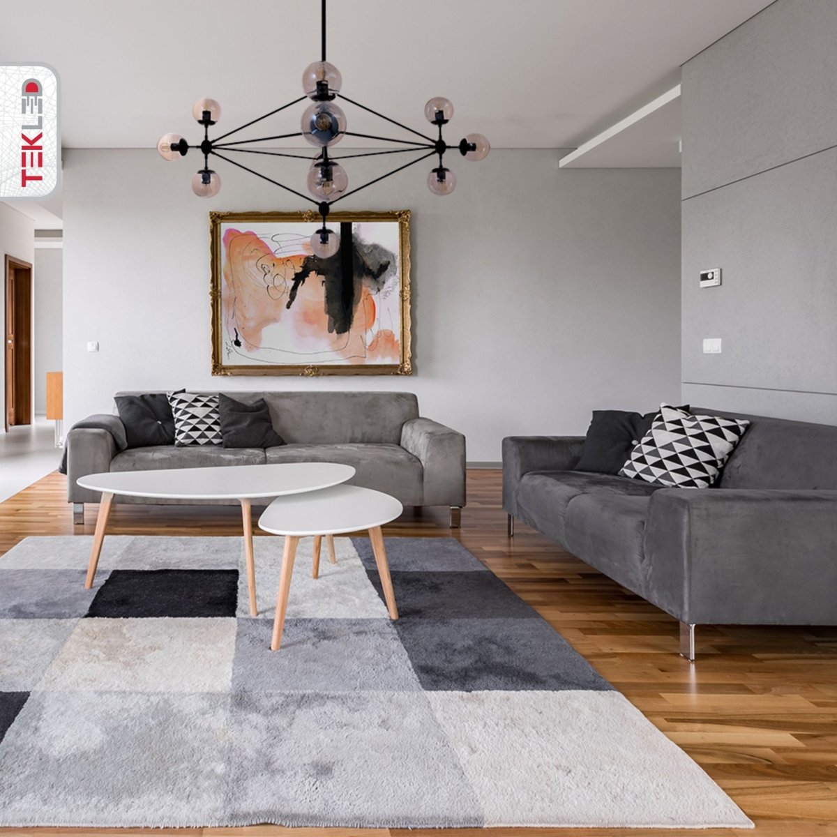 Molecule Shape Black Rod Metal Amber Glass Globe Chandelier Ceiling Light
