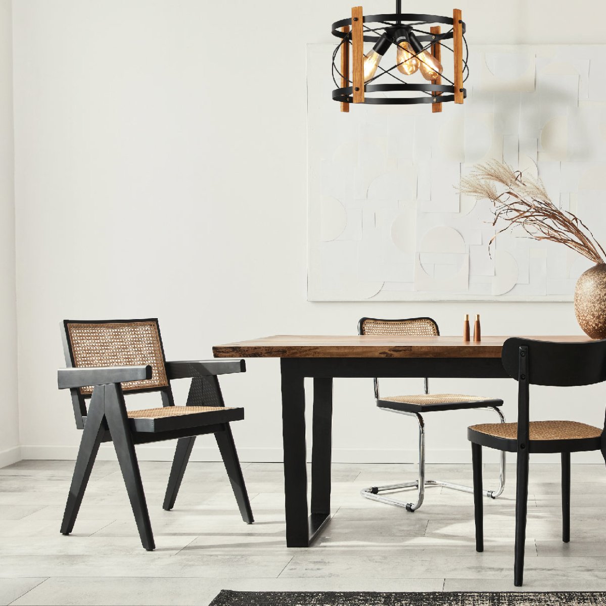 This black and wood caged pendant ceiling light adds a touch of industrial retro charm to any room. Its open cage design and vintage-style Edison bulbs (not included - you'll need to purchase these separately) create a warm, inviting atmosphere.