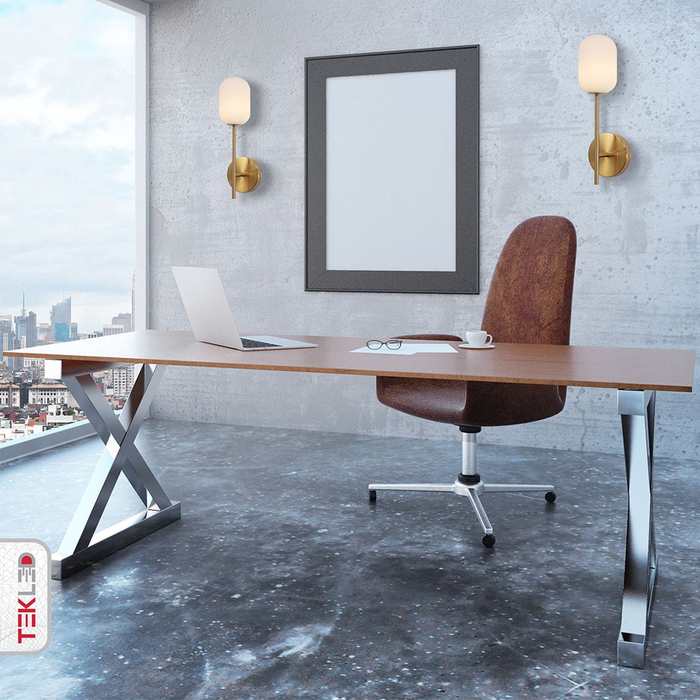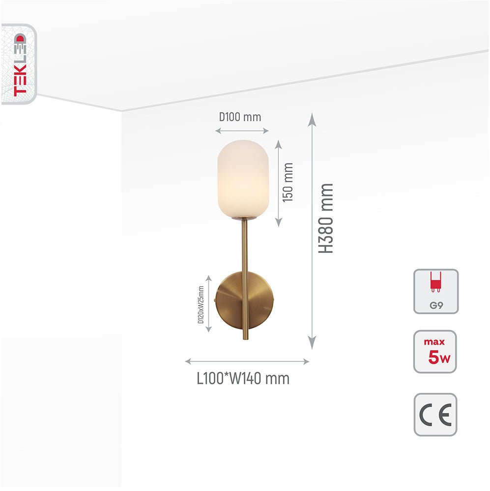 Gold Aluminium Bronze Metal Opal Glass Cylinder Wall Light G9