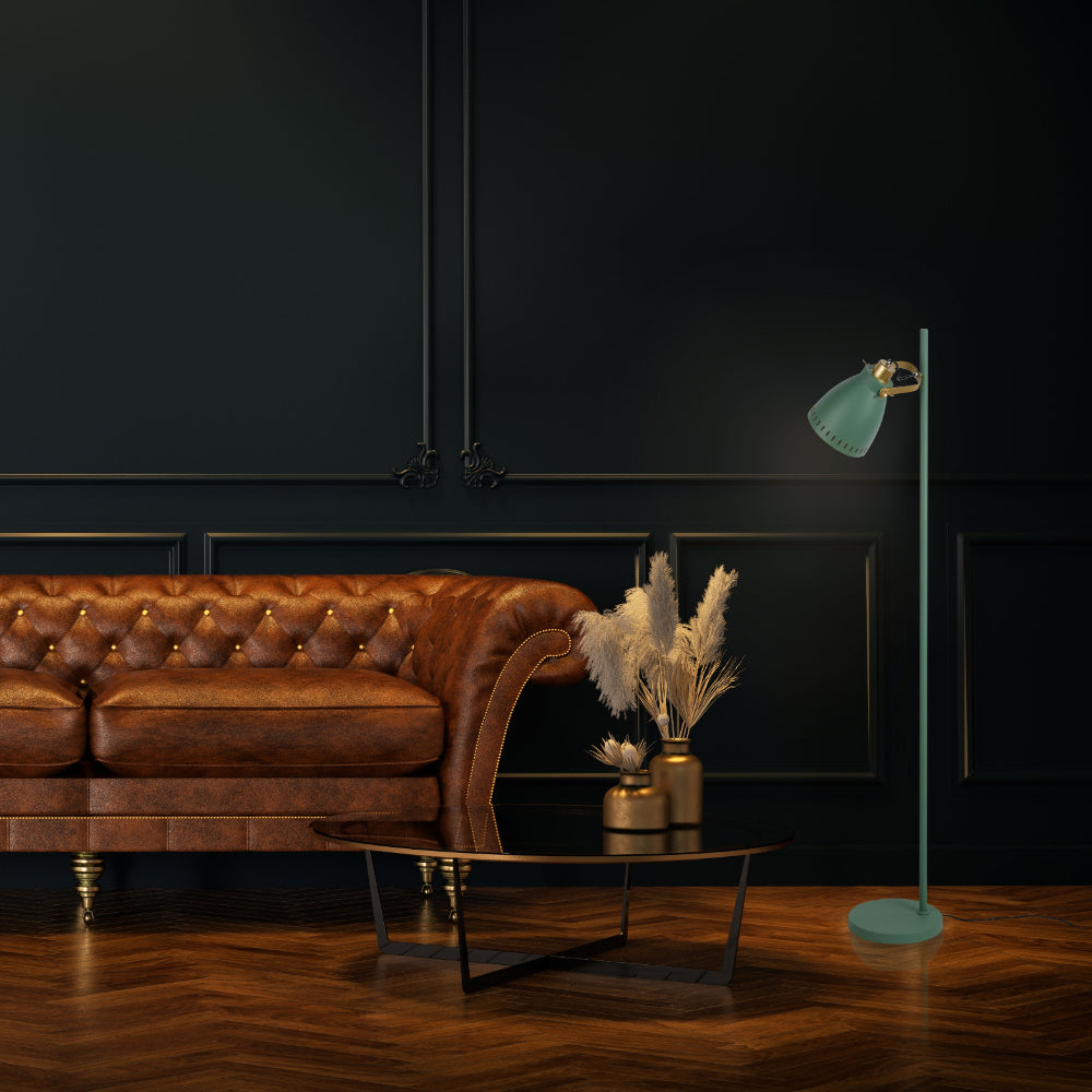 Конусный торшер с золотыми деталями и декоративным абажуром - универсальные цвета