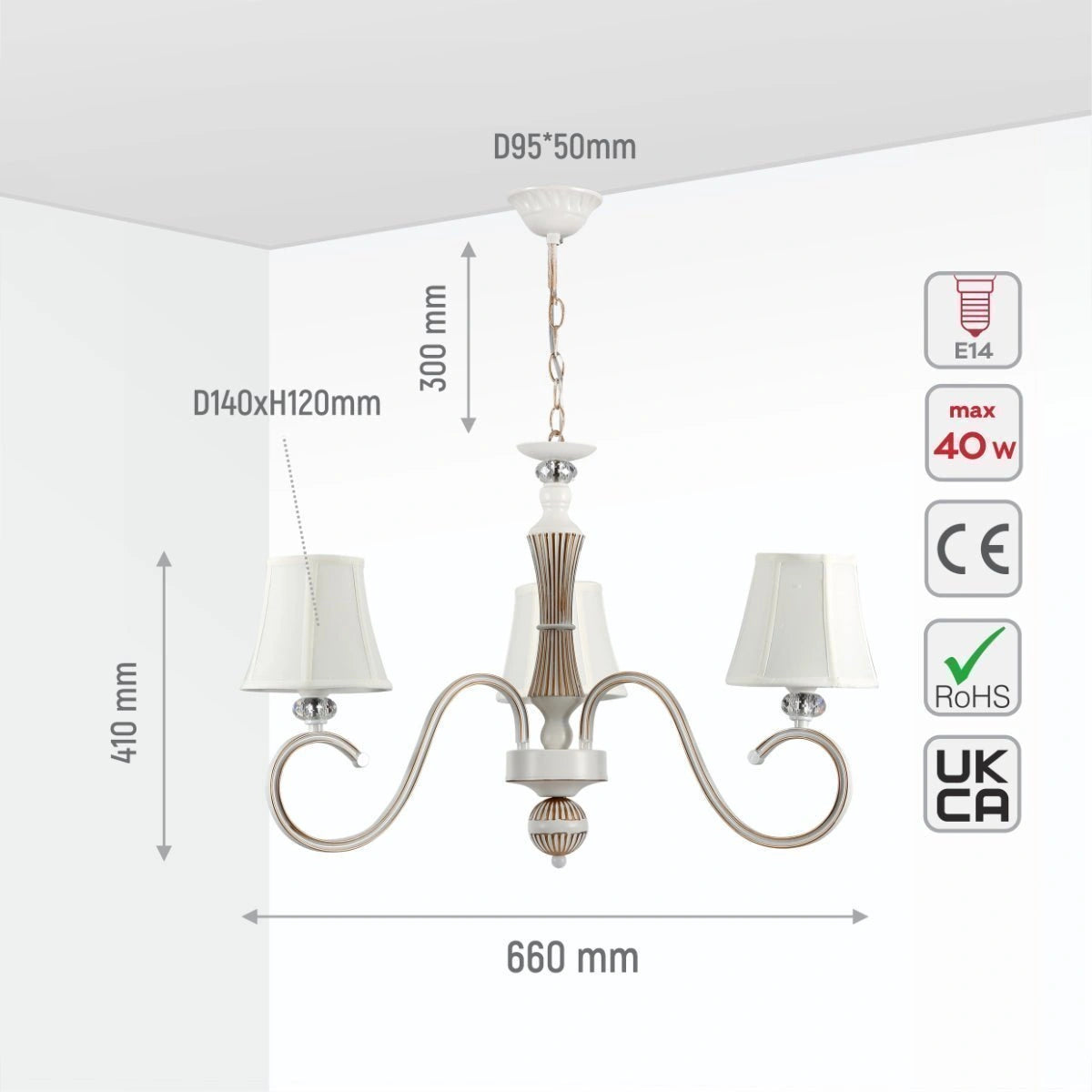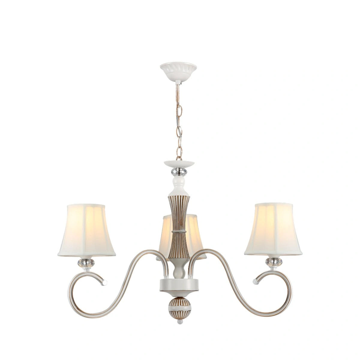 Люстра классическая ретро с абажуром цвета Off White, aged ivory и золотыми элементами, E14