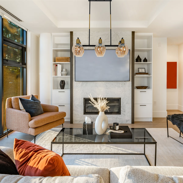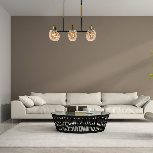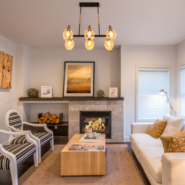 Люстра на потолок с черным золотым металлическим корпусом и янтарными конусами, 6xE27