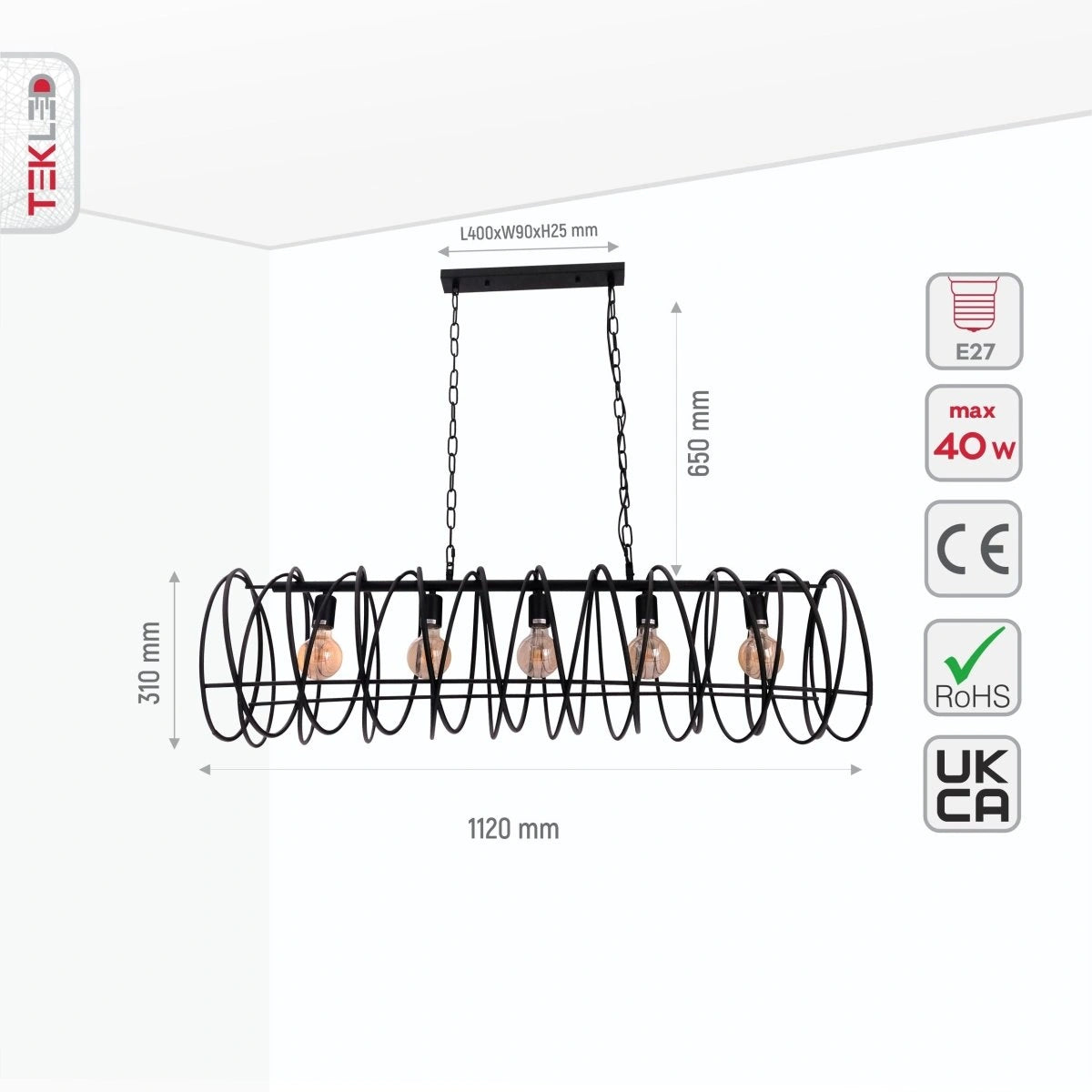 Люстра на потолок Черный металл спиральная виллы 5xE27