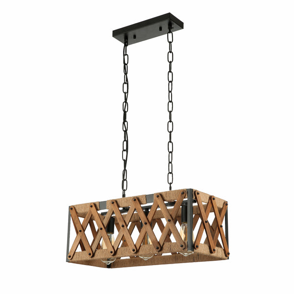 Представляем вам нашу Rustic Wood and Metal Crisscross Pendant Light, уникальное сочетание натуральных и индустриальных элементов от TEKLED. Этот яркий светильник оснащен прочной прямоугольной рамой, выполненной из состаренного дерева, дополненной черными металлическими акцентами. Перекрестный узор добавляет геометрического шарма, в то время как детали из джутового каната придают деревенское обаяние. Подвешенная на черной цепи, эта подвесная лампа излучает земное, но современное настроение, идеально подходящее для различных интерьеров.
