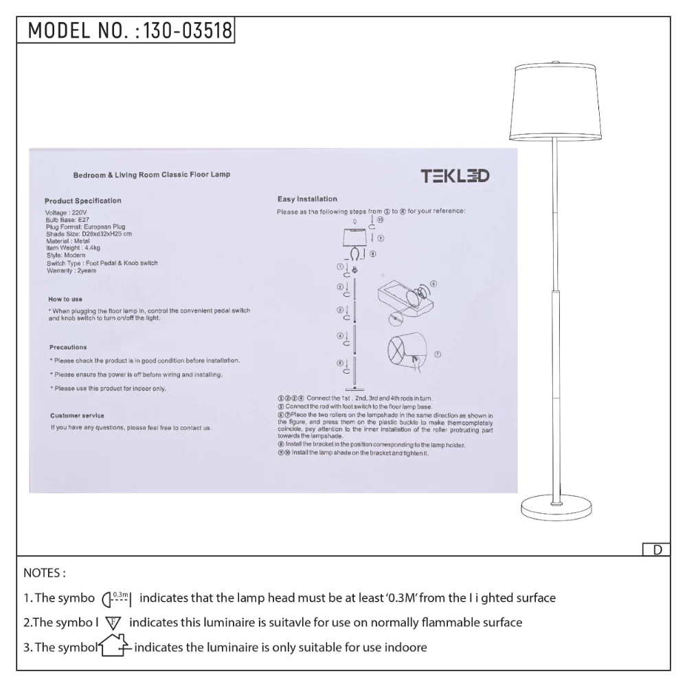 Регулировка яркости | Требуется установка диммера (например, нажимного или ползункового диммера для напольных ламп), диммер в комплект не входит |
