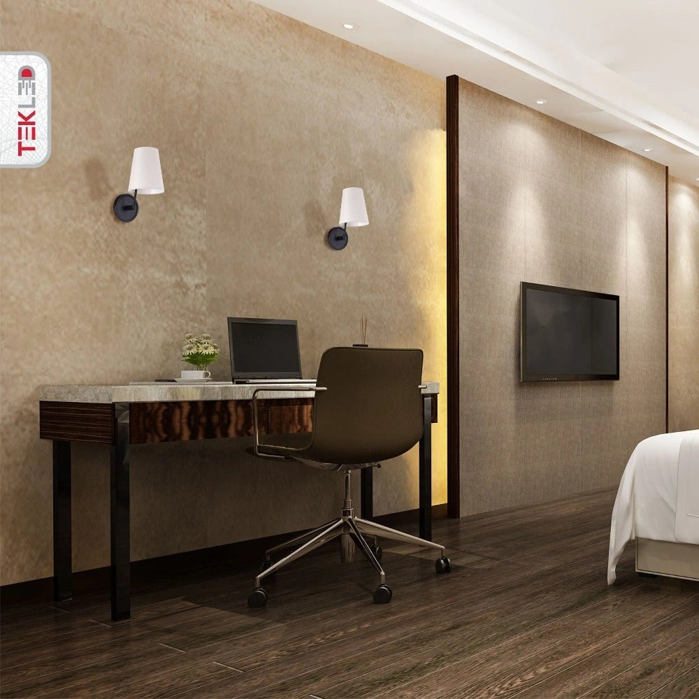 Настенный светильник с белой тканью и черным металлическим корпусом, патрон E14