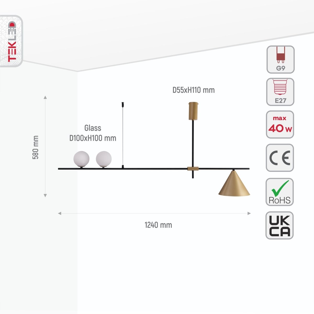 - Bulb type: G9 and E27