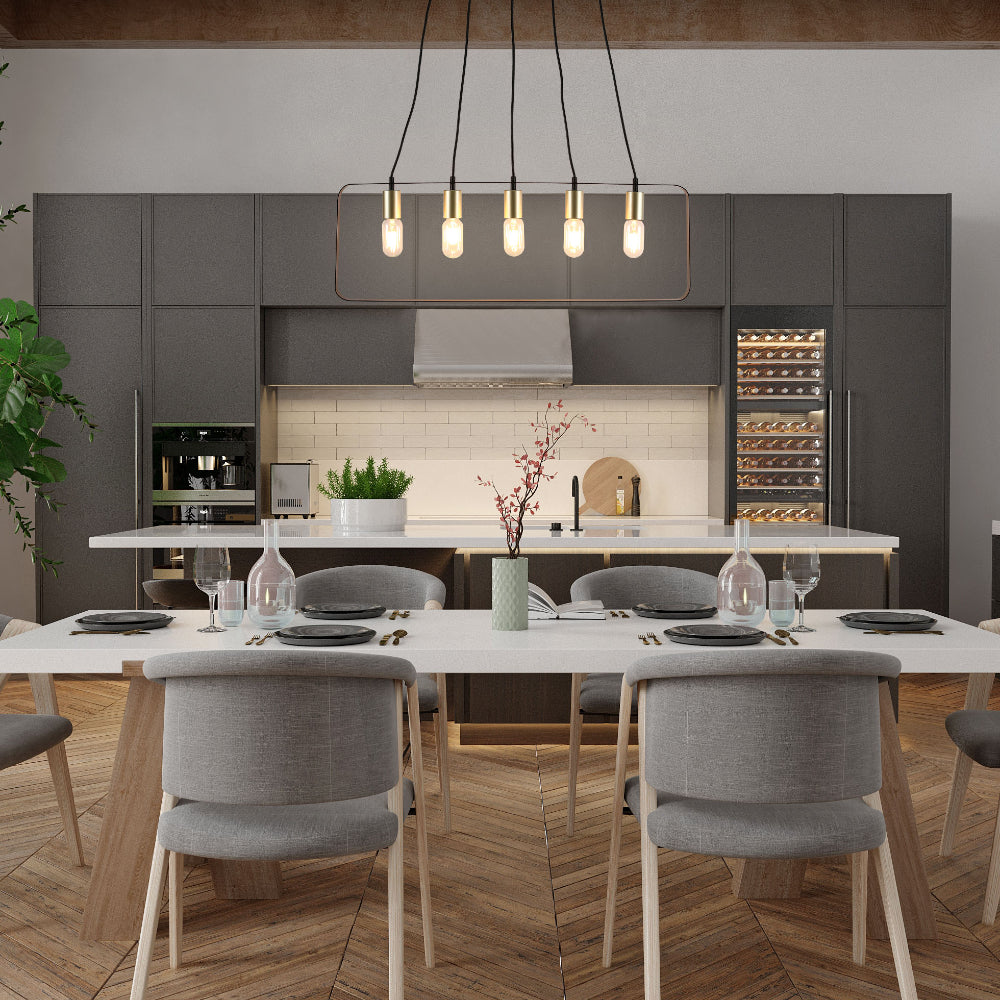 Современная минималистичная 2D люстра-остров черно-золотая E27x5